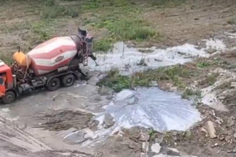 В челябинском микрорайоне «Академ Riverside» водитель бетономешалки сливал бетон на землю около стройплощадки нового дома ООО «Трест Магнитострой». Рядом находятся жилые дома и река Миасс, пишет сайт Pchela.news.
