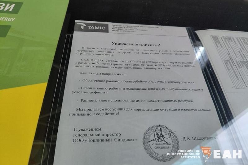 В Челябинске автозаправочные станции вводят лимиты на топливо. Ограничения на продажу бензина действуют на АЗС Tamic Energy, сообщает корреспондент ЕАН.