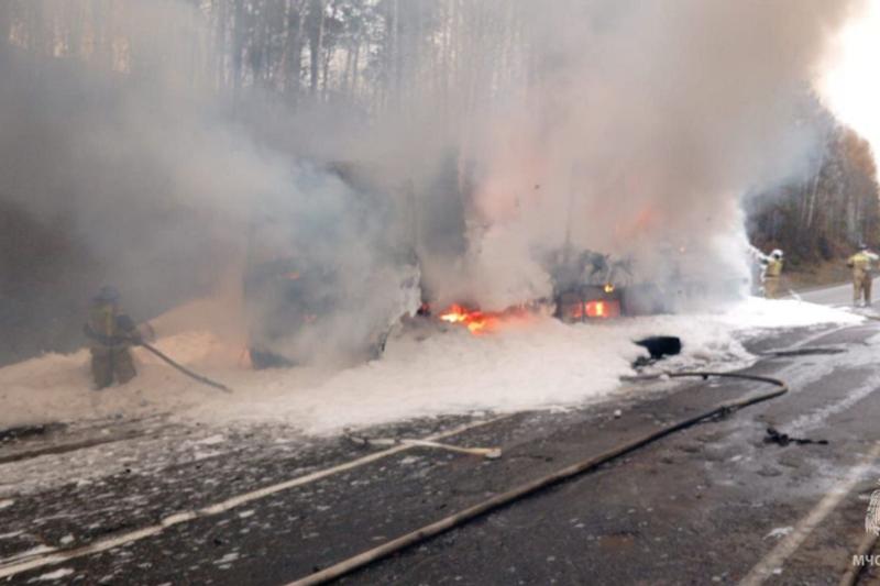 Грузовик загорелся во время движения. Сотрудники МЧС ликвидировали возгорание. Пострадавших нет. Устанавливаются все обстоятельства происшествия.