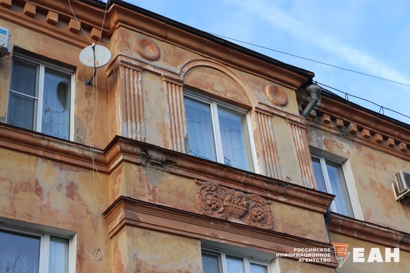 Заходим во двор и видим пятиэтажку, фриз которой украшен рельефным узором с красными звездами. До 2023 года дом на улице Дегтярева, 57а входил в перечень объектов культурного наследия. Сейчас он нуждается в капитальном ремонте.