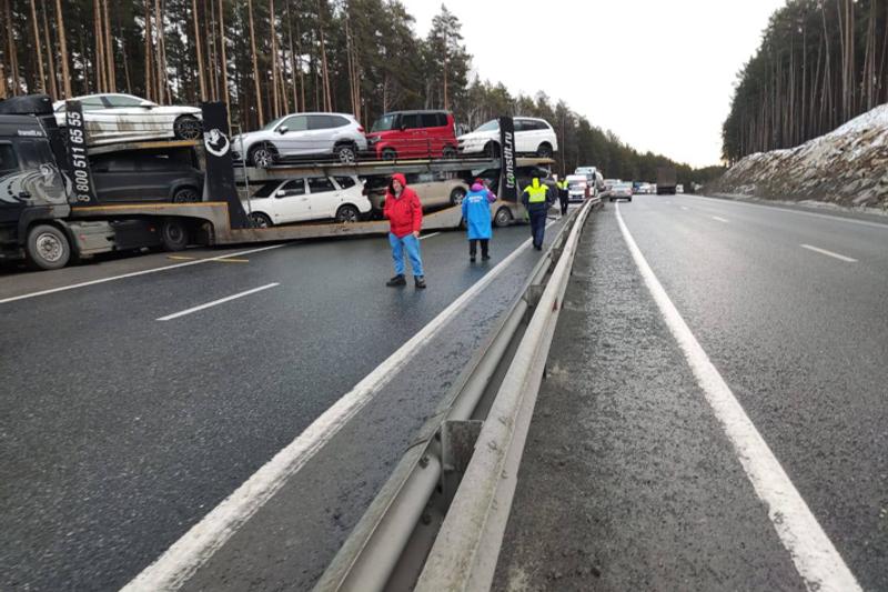 Шесть фур столкнулись на трассе М-5 в Челябинской области14 ноября в 11:32