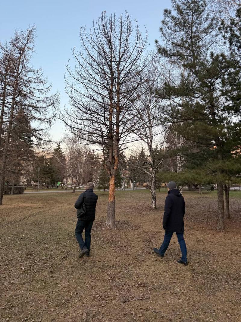 В сквере на площади Революции в Челябинске снесут 11 засохших берез и кедров. Об этом на аппаратном совещании рассказал замглавы города Александр Астахов.