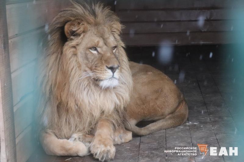 Льва зовут Шираз. Его купили на черном рынке и подарили в качестве живого подарка — необдуманные поступки богатых людей. Его держали на улице зимой в собачьем вольере. Потом поняли, что это не собака, а теплолюбивое животное. С обмороженными лапами, рахитом, обмороженным хвостом его привезли к нам в приют. Один плюс в этой истории — его не обижали.