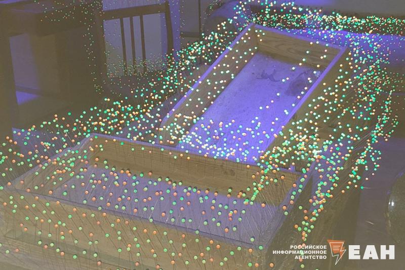 В одном зале разместили инсталляцию «Биостанция». Ее специально для пространства музея создали художник Сергея Деникин и куратор Александр Дашевский из Санкт-Петербурга.