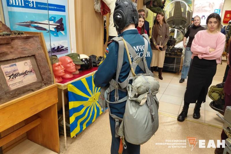 ЧВВАКУШ в этом году исполняется 90 лет. Училище бережно хранит свою историю и память о героях: на его территории есть музей, с которого и началась экскурсия. Дети увидели знамена, модели самолетов, награды, фото выпускников, трофейный украинский БПЛА и даже вытащенный из самолета оптический прицел бомбометания.