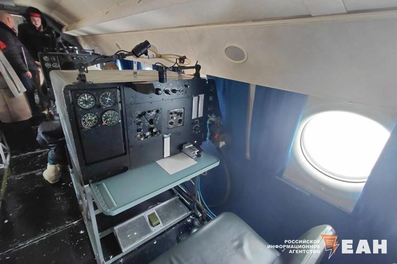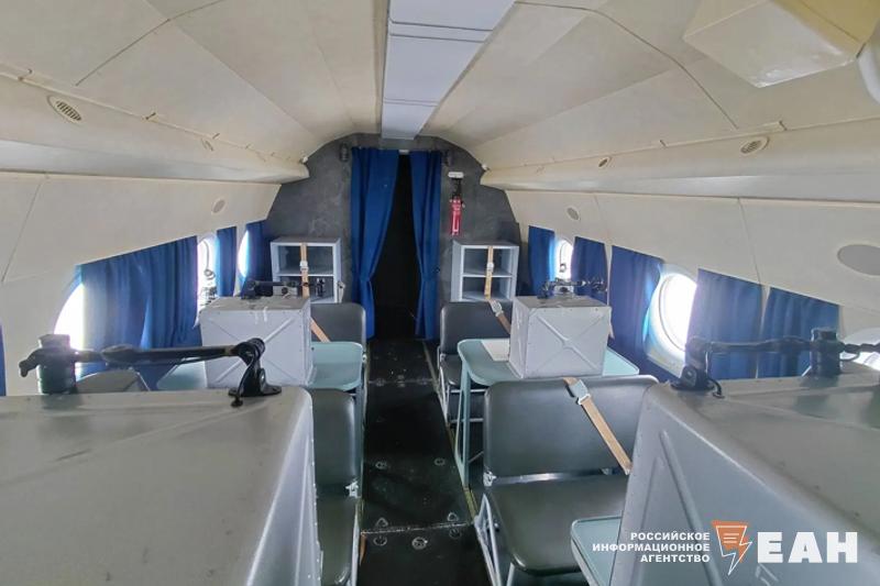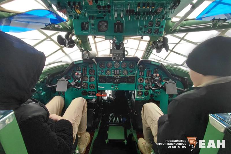 Группа двинулась к самолету Ту-134Ш, который ЧВВАКУШ использует как учебный. Внутри вместо обычных пассажирских кресел – учебные места с «партами» и авиационным оборудованием. На них курсанты получают профессиональные навыки прямо во время полетов.