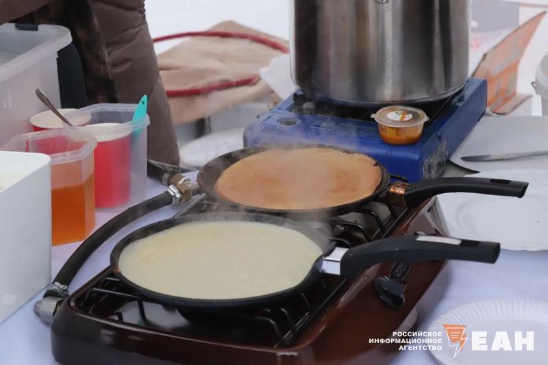 Челябинцев и гостей города не испугали ни морозная погода, ни снегопад. На центральной аллее парка работала ярмарка, на которой можно было приобрести различные угощения. Главным блюдом праздника, конечно, стали блины. Посетителям предлагали различные начинки: мясо, рыба, творог. Кроме того, гостей кормили шашлыками, перепелками, хот-догами, картошкой фри, пирожками.