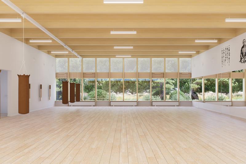 Внутри организуют две просторные раздевалки с индивидуальными шкафчиками, душевыми и санузлами, а также медицинский кабинет, помещения для административного персонала, тренерскую и комнату для хранения инвентаря. Одна из стен спортзала будет полностью зеркальной, чтобы спортсменам было удобнее отрабатывать движения. После завершения строительства здание передадут в муниципальную собственность.