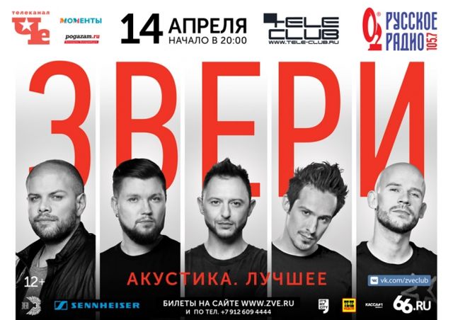Популярная рок-группа «Звери» представит в столице Урала свои лучшие песни. Концерт пройдет в екатеринбургском «Телеклубе». Музыканты исполнят романтическую акустическую программу, сообщил лидер группы Роман Билык.