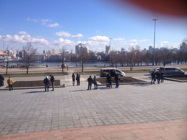 О гостях из Москвы ЕАН рассказали работники городских заводов. Группу рабочих собрали у Белого дома – им предстояло сопроводить гостей до своих предприятий. Тут же стояли автобусы.