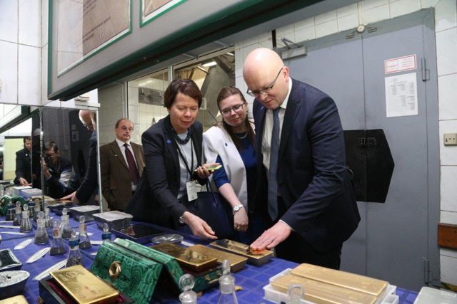 Финский дипломат проявил большой интерес к экскурсии на промплощадку. Особое впечатление на Микко Хаутала произвело посещение химико-металлургического цеха, где прямо на его глазах выплавили золотой слиток. Господин посол впервые присутствовал при таком зрелище и признался, что был очень удивлен немалым весом слитка (12 кг) при достаточно скромных размерах.