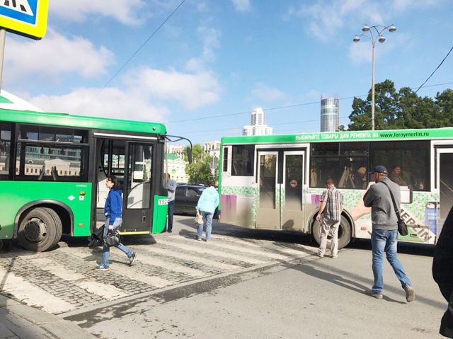 В центре Екатеринбурга сегодня около 9:00 столкнулись два пассажирских автобуса. ДТП случилось на перекрестке улицы 8 марта и проспекта Ленина, рассказали ЕАН очевидцы.