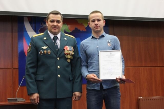 Приказом министра МЧС доброволец получил нагрудный знак «Участнику ликвидации последствий чрезвычайной ситуации».
