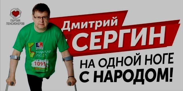 На одном из них политик, лишившийся в молодости одной ноги, изображен бегущим марафон, а слоган гласит «Дмитрий Сергин. Иду в губернаторы». На втором плакате слоган еще более провокационный. «Дмитрий Сергин. На одной ноге с народом».