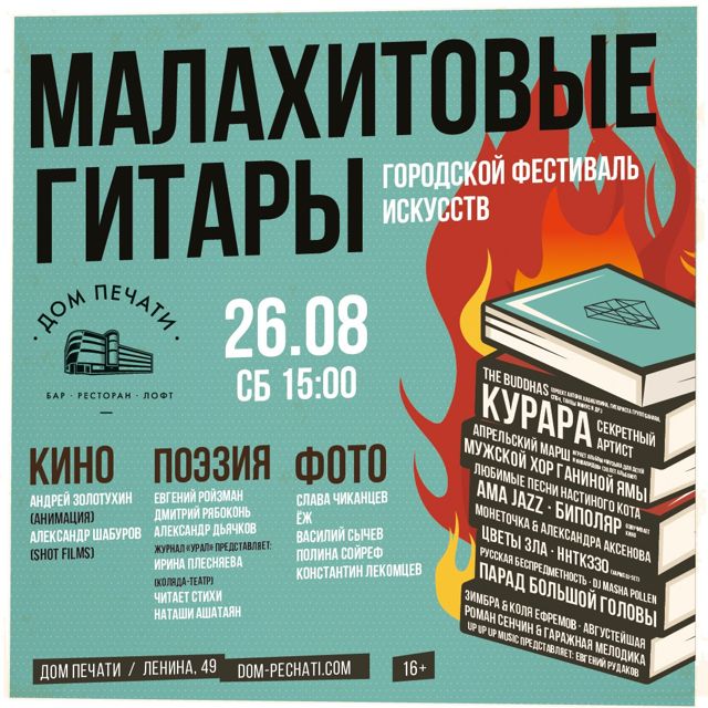 В ближайшие выходные в столице Урала пройдет городской фестиваль искусств «Малахитовые гитары». Музыканты, самые известные поэты города и атмосферные фотографы порадуют своим творчеством на площадке екатеринбургского "Дома печати". Об особенностях сейшена этого года ЕАН рассказал организатор Антон Касимов.