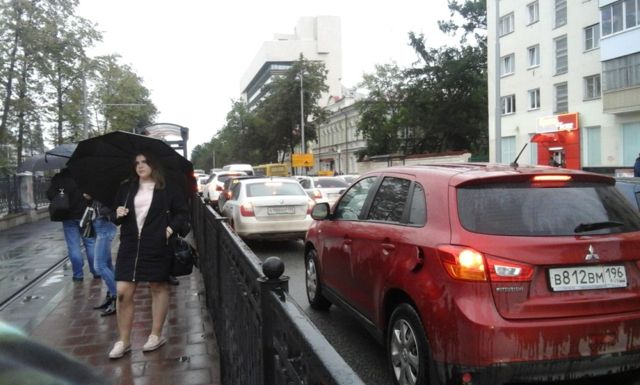 Ограничения не распространяются на трамваи – они по-прежнему делают остановку на Площади 1905 года. Однако это не дает гарантии, что добраться на работу на электротранспорте через этот участок можно быстрее, чем на автобусах, которые теперь делают крюк по Малышева. Дело в том, что все трамвайные пути забиты машинами.