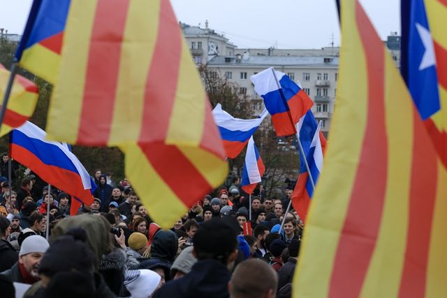 Несмотря на небольшой ажиотаж, осеннее мероприятие наверняка будет за что вспомнить. Каталонско-российские цвета, жесткая работа полиции, митингующие под мрачным октябрьским небом – в фоторепортаже Алексея Колчина для ЕАН.