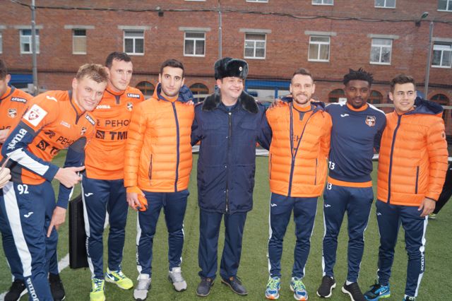 В колонию сегодня отправились десять игроков «шмелей»: нападающие Владимир Ильин, Эдгар Манучарян, полузащитники Юрий Бавин, Георгий Чантурия, Николай Димитров, Роман Емельянов, Петрус Бумаль, защитник Денис Кулаков, вратарь Дмитрий Арапов. Возглавил их бессменный капитан Артем Фидлер.