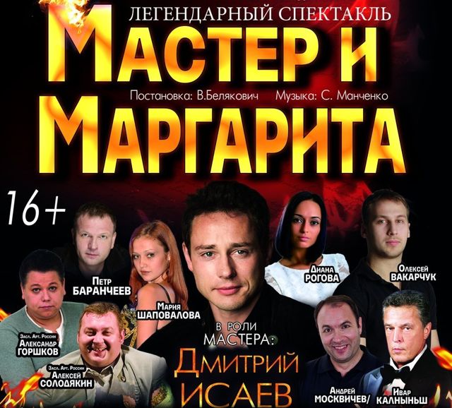 Как стало известно, роль мастера сыграет актер Дмитрий Исаев, известный по таким фильма, как «Бандитский Петербург. Фильм 6», и «1812 – Уланская баллада». Задействован в спектакле и звезда сериалов «Кадетство» и «Солдаты» Владимир Стеклов.