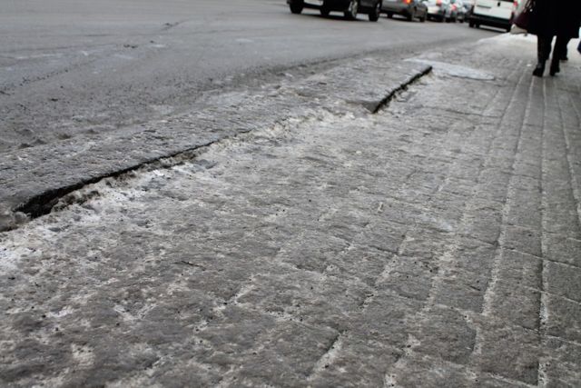 С началом гололедного сезона мэрия начала посыпать тротуары и дороги специальными средствами: первые - мелкофракционным щебнем, вторые - реагентом «Бионорд», оставшимся с прошлого года.