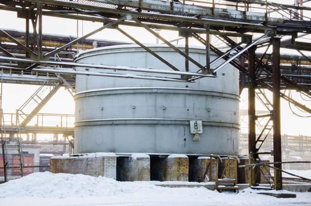 Емкости для хранения серной кислоты представляют собой вертикальные цилиндры высотой 5 м и диаметром 9 м. Выполнены они из углеродистой стали. Каждая из таких бочек позволит хранить до 1 000 тонн серной кислоты. Футеровка внутренних поверхностей в них не предусмотрена, поскольку спокойное состояние, в котором находится серная кислота в таких емкостях, способствует образованию на металлических стенках защитной сульфатной пленки. Она будет являться естественным защитным слоем, который предотвратит коррозию и разрушение металла.