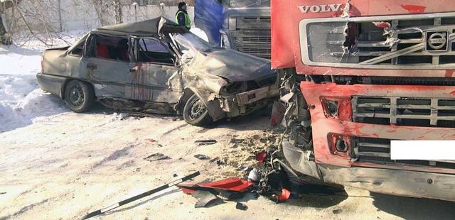 Авария на улице Монтажников случилась в 12:55. По предварительным данным, водитель Daewoo Nexia, двигавшийся со стороны Расточной, не обеспечил контроль за автомобилем. Легковушка сначала врезалась во встречный грузовик Volvo, а потом Daewoo отбросило на другой грузовик Volvo, припаркованный с левой стороны.