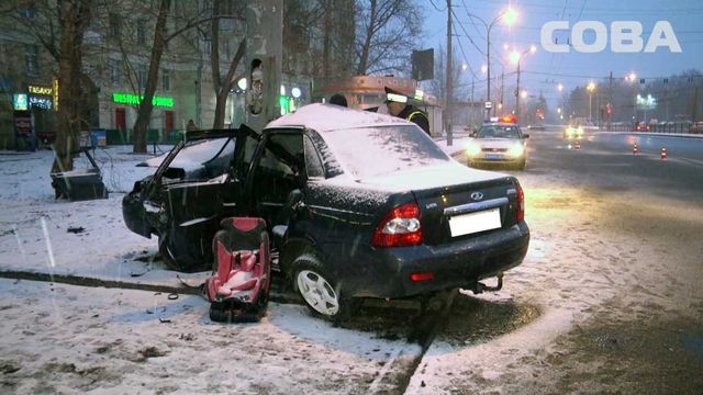 В Екатеринбурге на проспекте Космонавтов Lada Priora врезалась в столб, сообщает служба спасения «Сова».