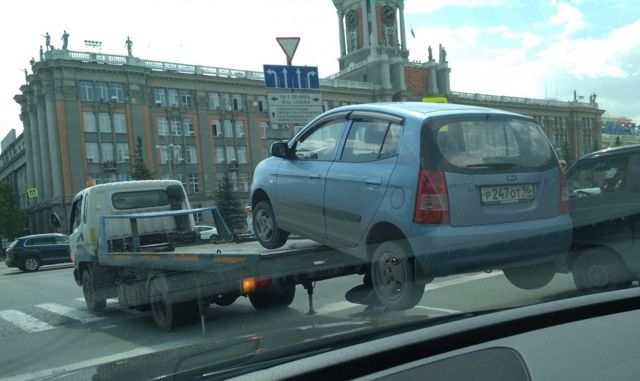 Легковой автомобиль упал с эвакуатора на перекрестке улиц 8 Марта и проспекта Ленина, свидетельствуют пользователи сообщества «Инцидент Екатеринбург» во "ВКонтакте".