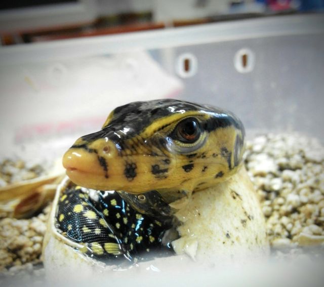 Как сообщает пресс-служба учреждения, детеныш появился на свет 16 июня, до этого момента яйцо 6 месяцев находилось в инкубаторе. Сейчас малыш находится в отсаднике, питается сверчками, саранчой и перепелиными яйцами.