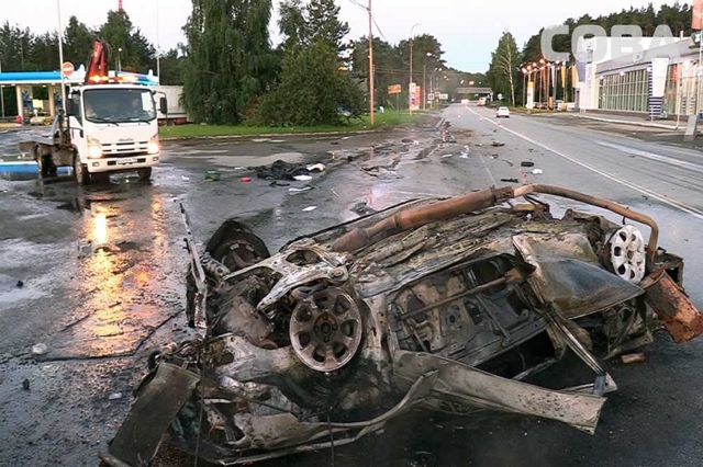 Ночью на Березовском тракте произошло странное ДТП, в результате которого автомобиль Peugeot полностью сгорел, сообщили в службе спасения «Сова».