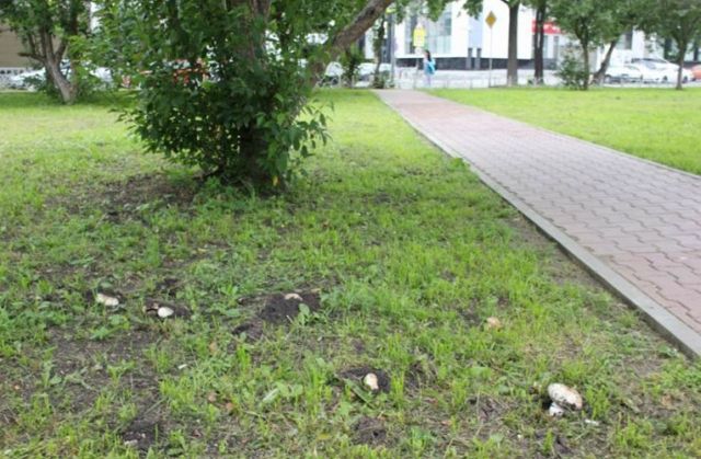 «Грибы появились рядом с пешеходной дорожкой, на видном месте, привлекая внимание горожан», – говорится в сообщении.