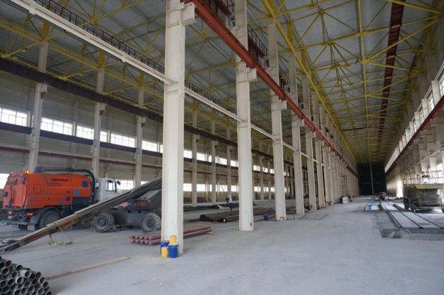 На объекте ведется монтаж вентиляционных сетей и системы отопления, выполняются работы по устройству фундаментов под оборудование, монтаж подкрановых балок, транспортной системы и так далее.
