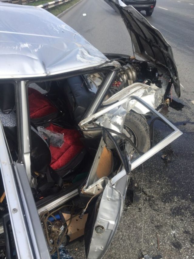 По словам автомобилистов, тягач Tatra на выезде с моста подрезал «четверку». После этого ВАЗ столкнулся с задним колесом грузовой машины. Затем «легковушка» дважды перевернулась на дороге и встала на крышу.