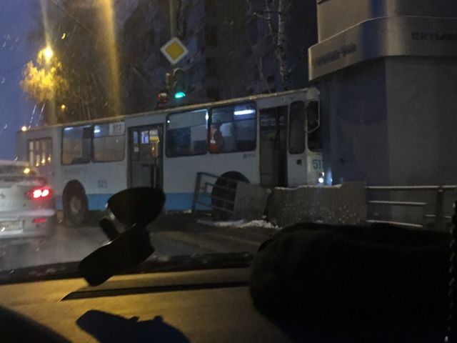 В Екатеринбурге в Пионерском поселке троллейбус снес дорожные ограждения и врезался в павильон с питьевой водой.