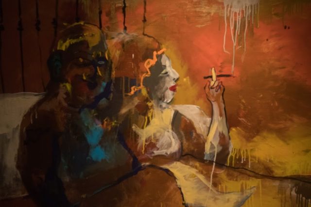 В каком-то смысле Воронов «сжульничал» и пошел легким для экспрессиониста путем. Добрая часть представленных работ нарочито неумело скрывает в себе эротический подтекст. В расплывчатых пятнах краски легко угадываются человеческие тела. Где-то эротика превращается в откровенную провокацию (диптих "Свингеры"). Где-то - окунает зрителя в теплую атмосферу постельного перекура ("Перекур"). Ну а где-то просто становится частью невинной игры с образами ("Поцелуй").