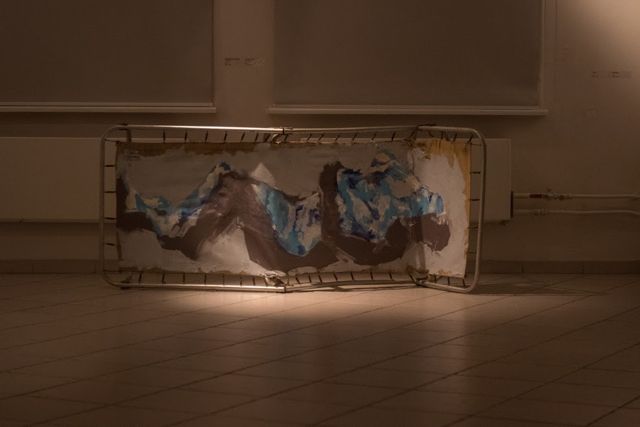 «Раскладушка - это дух студенчества. Дух свободы. Для кого-то это просто спальное место. Художник же без труда увидит в ней натянутый холст. Скрипучие железки - это его рама. Готовый арт-объект. Вот я и использовал его по назначению! Изображенное, думаю, в комментариях не нуждается. Это тела, мужское и женское. Почему женщина сверху? Облака всегда сверху», - ерничает Воронов.