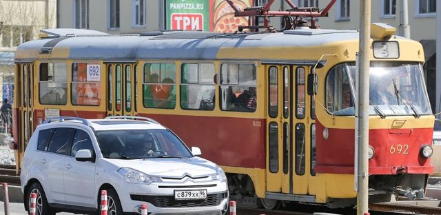 Сегодня в 17:08 в центре Екатеринбурга, на перекрестке Луначарского-Шевченко из-за отсутствия напряжения встали трамваи.