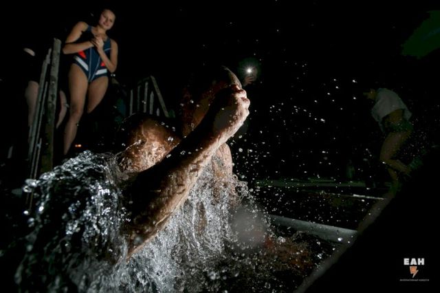 По данным МЧС, в Свердловской области этой ночью в прорубь окунулись больше 18 тыс. человек. Только в Екатеринбурге работает 31 купель, и тем не менее, желающие искупаться в ледяной воде в первый час после наступления праздника Крещения Господня выстаивали очередь. Корреспонденты ЕАН побывали у проруби на водоеме рядом с отелем “Рамада”. В черте города это одно из самых популярных и обустроенных мест для крещенских купаний.