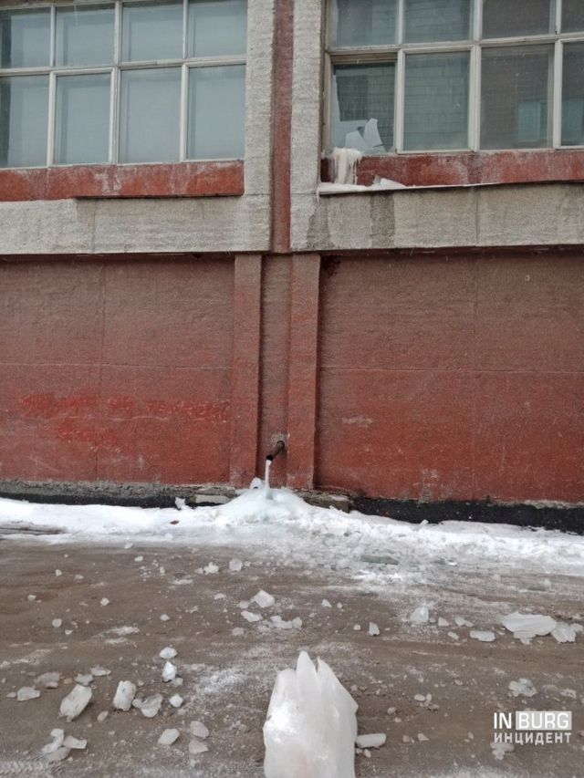 С крыши спортзала екатеринбургского ГИБДД на Степана Разина, 20 сорвалась глыба льда.