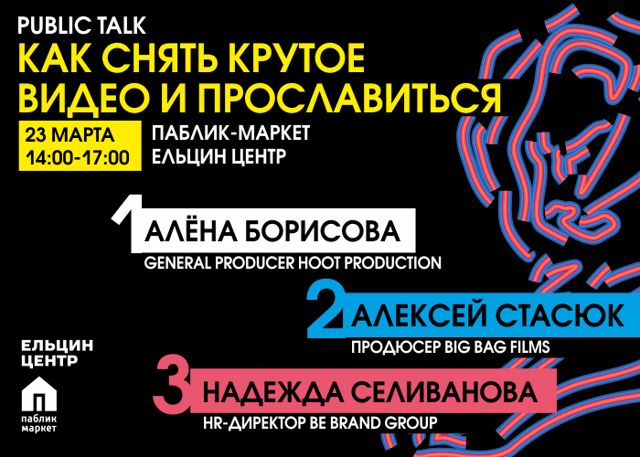 Мероприятие состоится в Ельцин Центре. Специалисты расскажут о технических хитростях производства видеорекламы, о "серых кардиналах" съемочной площадки, эмоциональных приемах воздействия на зрителя, бюджетах и о поиске себя в профессии. Среди спикеров: general producer Hoot Production Алена Борисова с темой «Невидимые герои съемочной площадки: локейшнменеджер, художник - постановщик, второй режиссер», продюсер Big Bag Films Алексей Стасюк с темой «Что заставит зрителя рыдать?», HR-директор коммуникационного агентства Be Brand Group Надежда Селиванова с темой «Как продать себя как эксперта».