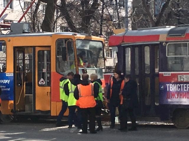 В Екатеринбурге сегодня днем столкнулись два трамвая, сообщают очевидцы.