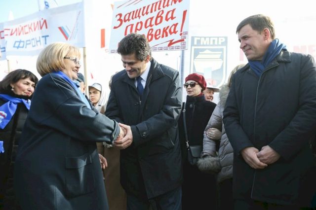 С постамента возле памятника Ленину к собравшимся обратились первые лица региона. Приветственное слово взял губернатор Свердловской Области Евгений Куйвашев.