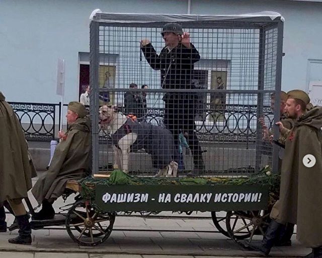 Напомним, 9 мая они провезли по центральной площади клетку с "фашистом" и двумя собаками. Реакция на акцию была неоднозначной. В частности, оппозиционер Алексей Навальный оценил ее следующим образом: "На параде в Нижнем Тагиле по городу возили клетку с "пленными немцами". И все-таки живет в наших чиновниках креативный дух. Гей-парады они вынуждены запрещать, но находят, как сублимировать свою страсть к ролевым играм. Думаю, хорошо бы всю администрацию города к доктору сводить", - написал он в Twitter.