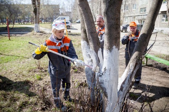 Действовали слаженно по строго организованному плану, разделившись на группы. Одни собирали мусор, прошлогоднюю листву и ветки, другие белили стволы деревьев, третьи выкапывали ямы под саженцы вдоль пешеходной дорожки. В этом году зеленый парк двора обновился молодыми деревцами березы, ели и облепихи.