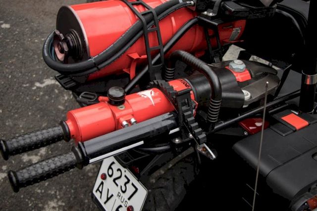 Мотоциклы работают в паре. Один из них оснащен системой пожаротушения на 16 литров, другой преимущественно инструментами для монтажа: гидравлическими ножницами, раздвигателями и другим оборудованием. Кроме того, на борту есть средство связи, пожарные рукава и другое оборудование.