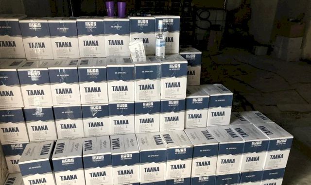 В то же время на территории другого участка, арендуемого уроженцем одной из стран СНГ, располагался кустарный цех по розливу фальсификата. В процессе осмотра складского помещения обнаружено и изъято свыше семи тонн запрещенной к свободному обороту спиртосодержащей жидкости в пластиковых емкостях пять и 10 литров, 7088 бутылок с нанесенными этикетками водочной продукции брендовых марок: «Талка», «Голд», «Хортица», и «Арбатская» подготовленной к оптовой реализации.