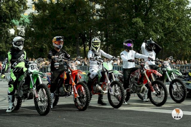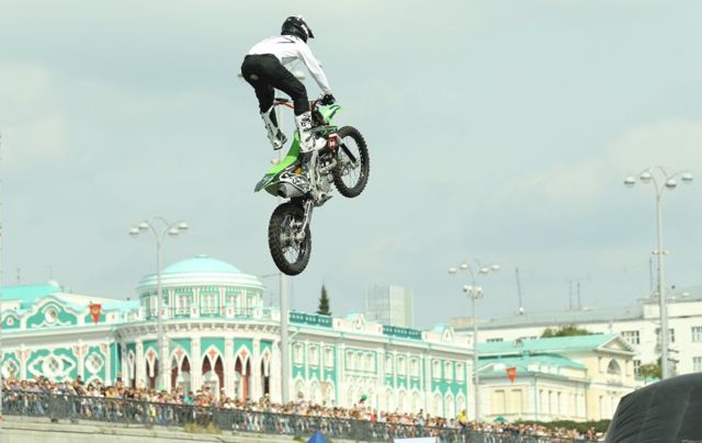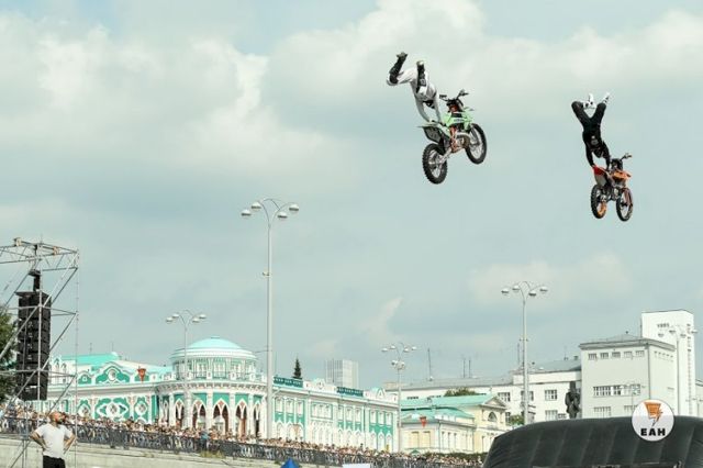 Вело-мото шоу такого масштаба - уникальное событие для всего Урала. Поздравить екатеринбуржцев с праздником и продемонстрировать свои навыки приехали москвичи из популярной Legend Stunt Team, мотофристайлеры из Коломны - FMX13, а также команда по велофристайлу FreestyleShow.