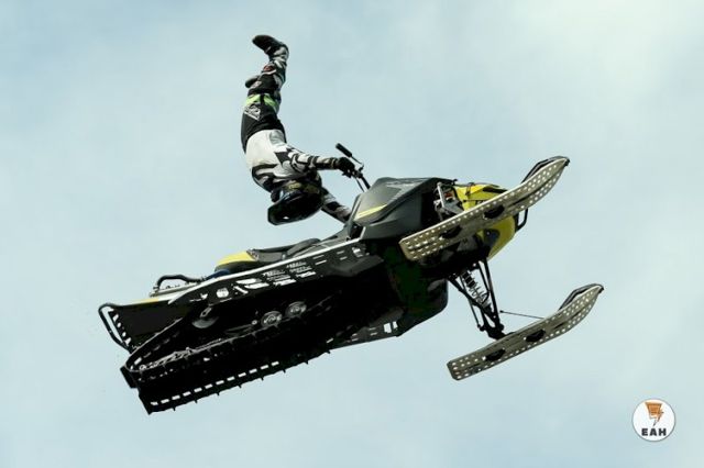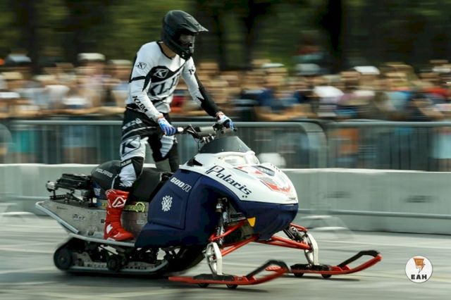 Со снегоходами гонщикам пришлось немного "сжульничать" - на лыжи установили небольшие колеса