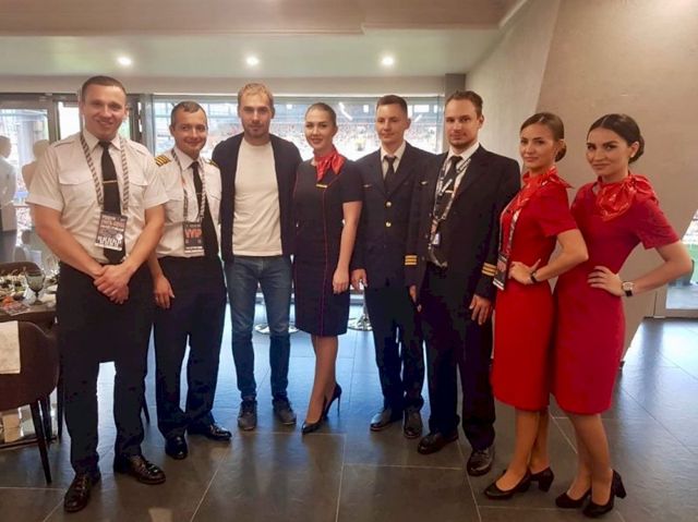 Встреча спортсмена и пилотов состоялась в субботу, во время футбольного матча «Урал" - "Крылья Советов» в Екатеринбурге.