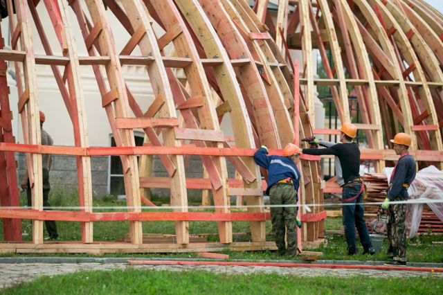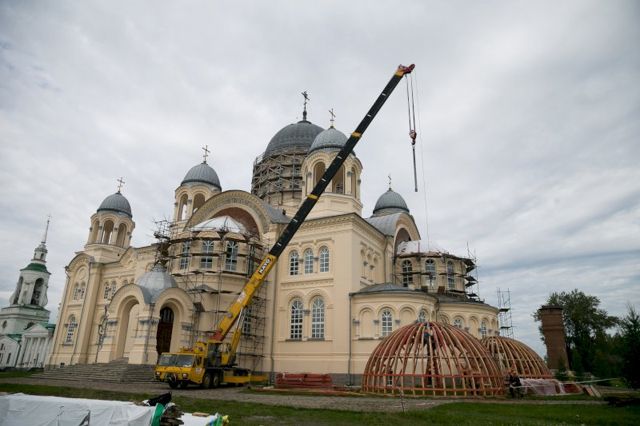 Накануне в праздник Преображения Господня были подняты деревянные полусферы куполов восточной апсиды и южного крыльца Крестовоздвиженского собора. В этом храме находится главная святыня обители – мощи святого праведного Симеона Верхотурского. Работы ведутся при содействии Фонда святой Екатерины.
